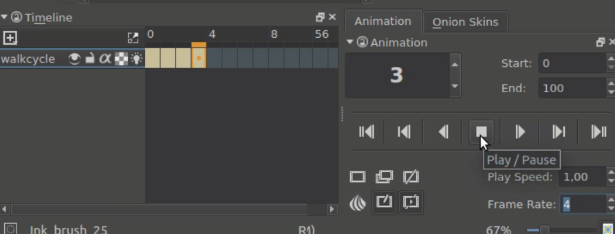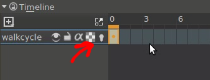 Теперь даже если мы выберем новый кадр, он не будет анимирован, ведь Krita не распознает слой “Walkcycle” как анимированный. Нам необходимо, чтобы программа действовала именно так, как мы хотим.